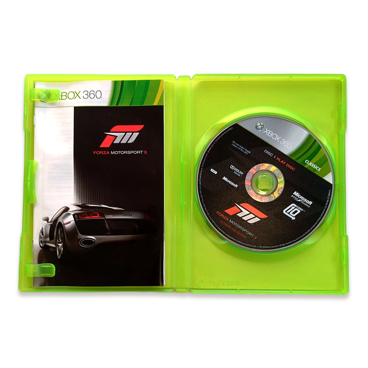 📖 Descrição: Forza Motorsport 3 is a racing video game developed for Xbox 360 by Turn 10 Studios. It was released in October 2009. It is the sequel to Forza Motorsport 2 and the third installment in the Forza Motorsport series. The game includes more than 400 customizable cars (More than 500 cars in the Ultimate Collection version) from 50 manufacturers and more than 100 race track variations with the ability to race up to eight cars on track at a time. These cars vary from production cars to race cars such as those from the American Le Mans Series.[1]